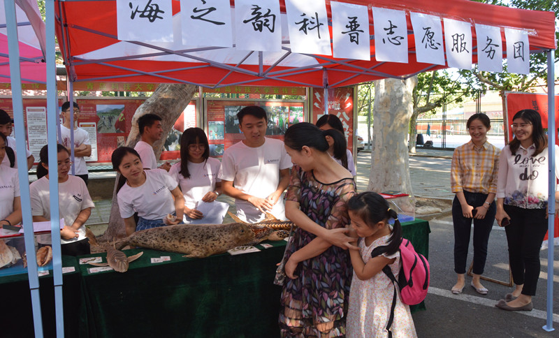 伟德国际bevictor1946长期重视志愿服务引领,学院的海之韵科普志愿服务团在迎新现场布置了科普展,以海洋动物标本为契机,介绍海洋环境与人类生存的密切关系,吸引了大量家长和员工驻足观看。