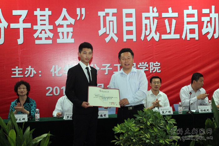 仪式上,“分子基金”项目领导小组组长、公司党总支书记晋文辉致欢迎辞。她向在“分子基金”筹建过程中给予指导和帮助的领导,向以感恩之心为母校捐资的2012届毕业生表示了谢意和敬意。学校教育发展基金会秘书长聂广明宣读了《关于准予设立伟德国际bevictor1946“分子”基金项目的批复》(青科大基金会字〔2012〕1号),2012届“分子”基金项目理事、毕业生代表田帅承同学作了发言。