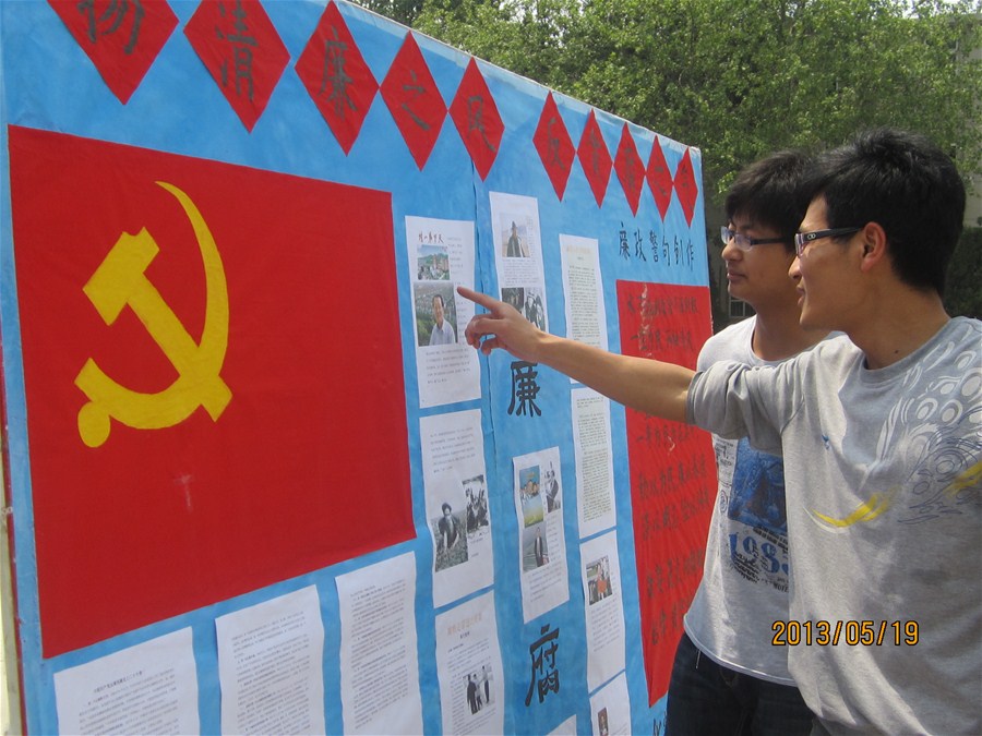 为增强党员干部的党性修养,提高廉洁自律意识,推进廉政文化建设,公司党总支于5月中上旬面向学院师生尤其是党员干部开展了“扬清廉之风,反贪腐之气”为主题的廉政图片推荐和廉政警示语征集活动,活动得到了各党支部和党员的大力支持,经过认真筛选和评比,公司党总支将优秀推荐图片和优秀廉政警示语于5月19日下午在四方校区小五四北进行了展示。