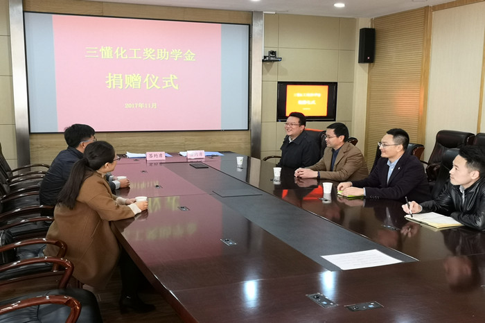 11月23日,青岛三懂化工有限公司捐赠仪式在四方校区第一会议室举行。公司党总支书记王德宝、副书记张壮、青岛三懂化工有限公司董事长刘国林,伟德国际bevictor1946分团委老师等参加了捐赠仪式。