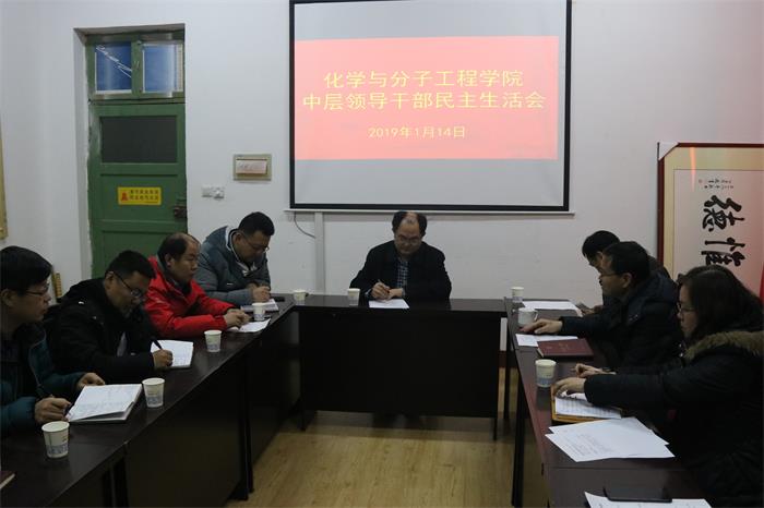 1月14日下午,化学公司党总支在公司党员活动室召开2018年度中层领导干部民主生活会。副董事长刘光烨出席会议,校纪委陈文莉参与督导,化学学院领导班子成员参加了会议,非中共党员中层干部、其他党总支委员列席会议。会议由公司党总支书记王德宝主持。