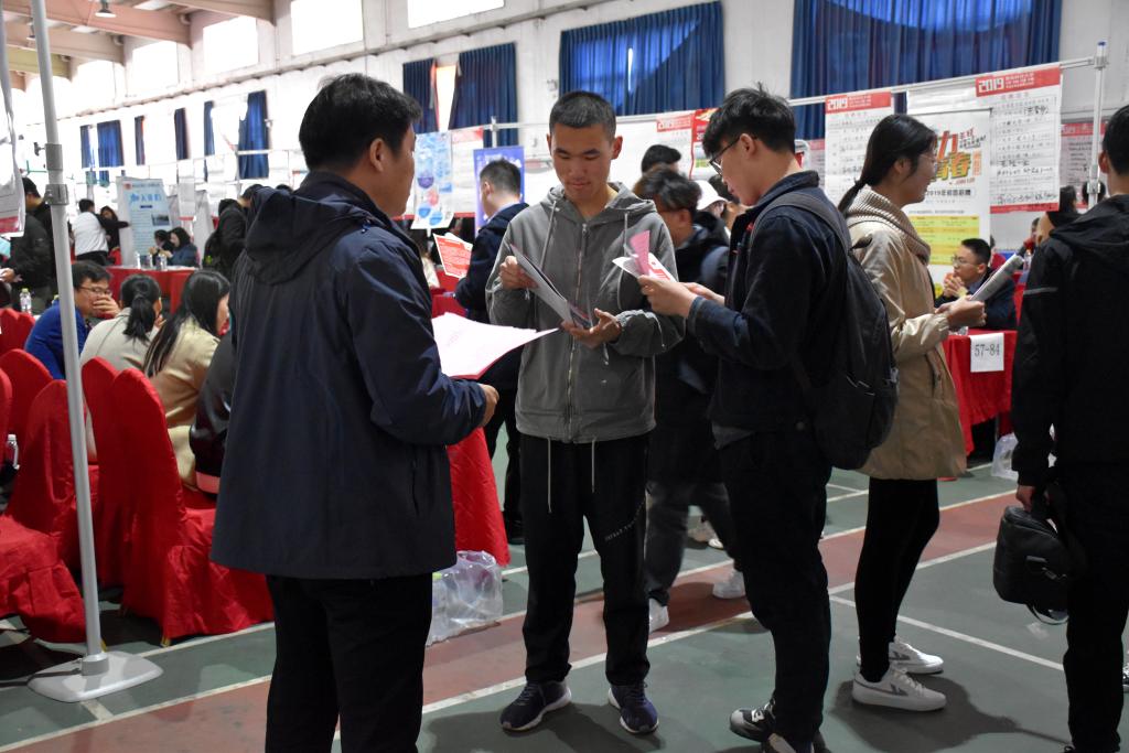 双选会期间,各公司党政领导亲临现场,与用人单位及毕业生亲切交谈,了解参会企业的招聘情况、毕业生就业工作等情况。各学院领导、毕业生辅导员还“现场说法”,对毕业生进行精准就业指导,起到了良好的效果。