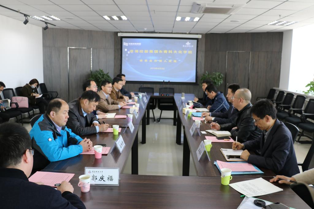 罗细亮对燕锡尧一行来访表示热烈欢迎,并从团队建设、人才培养以及科研成果等方面介绍了学院的整体情况。他希望通过此次交流,能够在巩固基础研究这一优势的同时,大力推进应用研究方面的发展,实现学院各方面蓬勃发展。李再峰等5位老师分别就各自团队的研究成果和产业化取得的成绩进行了汇报,希望能够在与企业的合作上实现突破。燕锡尧高度评价了学院老师的研究工作,希望能够在校企、院企合作等方面建立更深层次的联系,取得更好的发展。双方就建立长期合作关系,致力从源头上改进工艺流程、提高产能,实现循环发展、绿色发展等方面进行了深入交流。