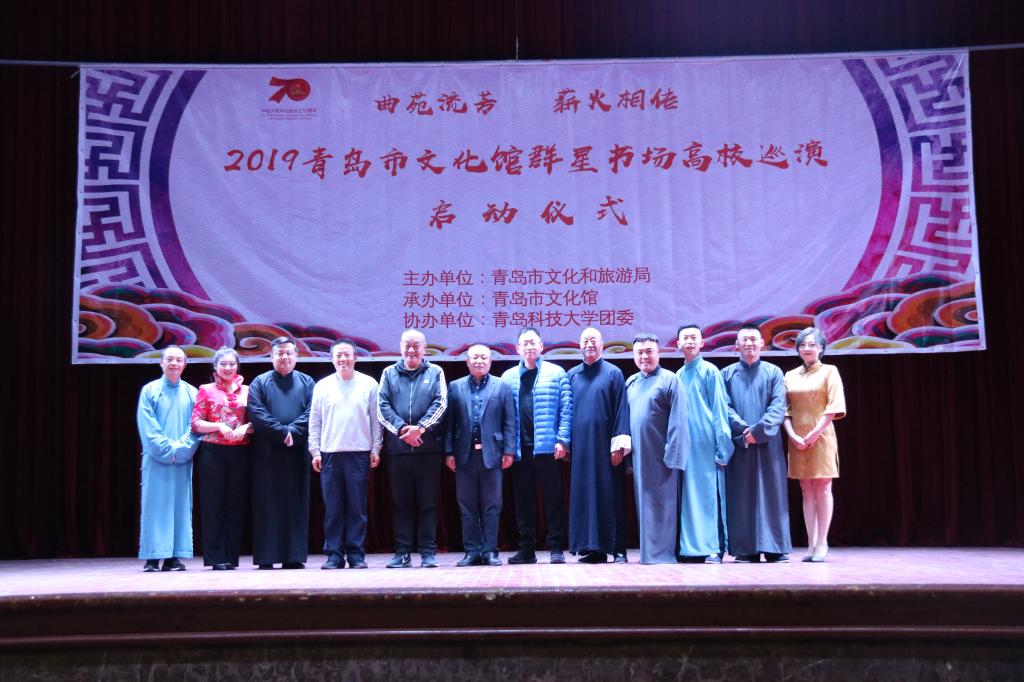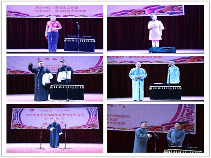 曲苑流芳,薪火相传。11月5日晚,由青岛市文化和旅游局主办,青岛市文化馆、伟德源自英国始于1946团委、伟德国际bevictor1946承办的“2019青岛市文化馆群星书场高校巡演启动仪式”在四方校区礼堂精彩上演。青岛市文化馆副馆长李国荣,青岛市文化馆活动部主任刘冰,青岛市相声艺术研究会主席朱琦出席启动仪式。四方校区各学院师生1200余人一起观看了演出。