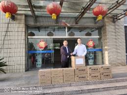 本次走访学院收到员工2009届无机化学研究生周晶个人捐赠一次性医用口罩1000支,医用酒精和84消毒液各6箱。
