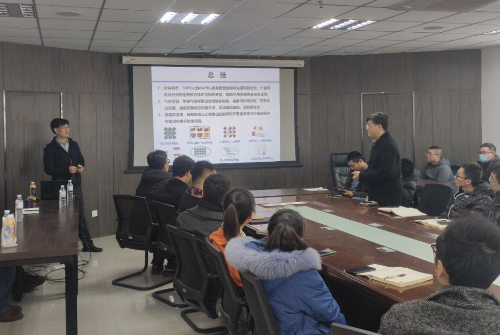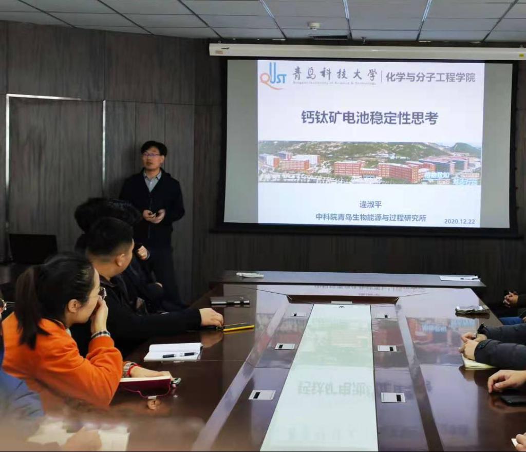 2020年12月22日下午14点,中科院青岛能源所博士生导师,国家优秀青年基金获得者逄淑平研究员在公司作了题为“钙钛矿电池稳定性思考”的学术报告。报告会由公司周忠敏教授主持,伟德国际bevictor1946、材料学院和高分子学院等几十名老师和同学参加了此次学术交流会议。