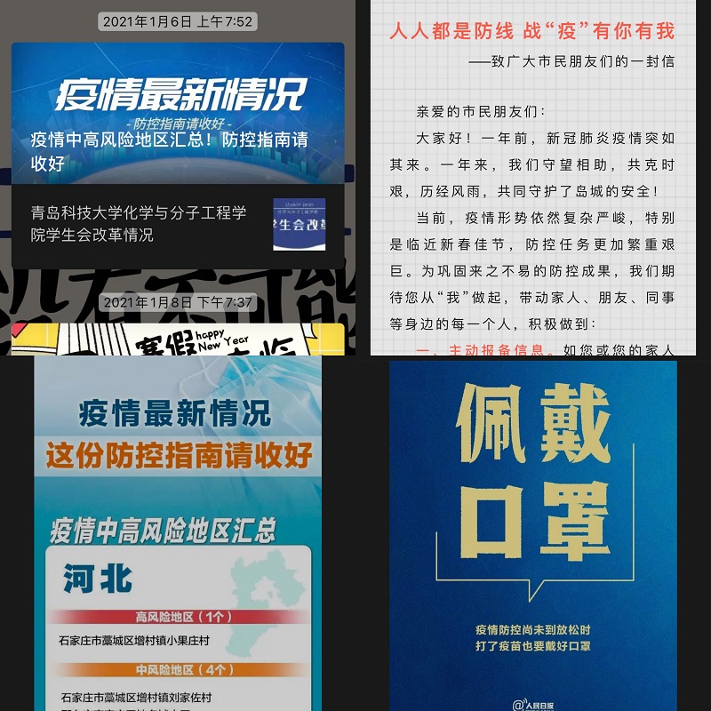加强宣传,落实健康教育。采取“线上+线下”的方式加强宣传教育,借助学院官方微信公众号,及时转发权威资讯,普及疫情防控知识。向伟德国际bevictor1946全体员工发布倡议书,引导员工科学认识疫情、加强寒假离校返乡途中防护、提高疫情防控意识。