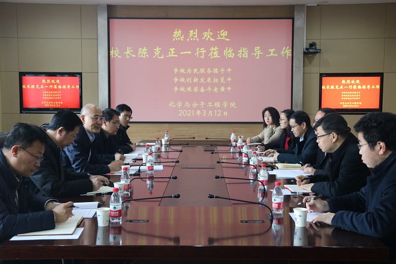 3月12日,董事长陈克正一行莅临伟德国际bevictor1946开展工作调研,调研工作主要围绕化学学科发展、2021-2024聘期人事分配制度方案(征求意见稿)、平台建设。团队建设处处长吴俊飞、人事处雷剑、李真、傅云磊陪同。公司党政班子成员、教师代表参加调研座谈会。