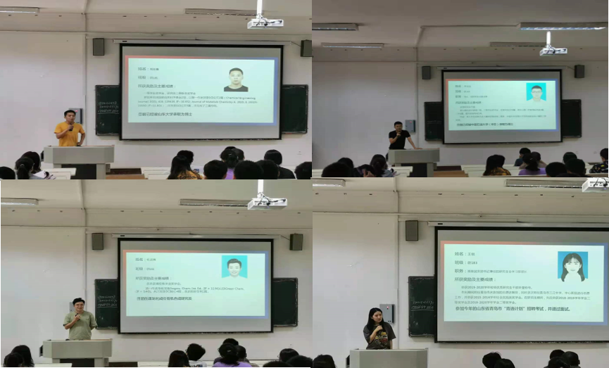 会议伊始,程丽老师介绍了2020届毕业生及往年毕业生就业情况,并详细分析了2022届研究生毕业生就业形势、就业须知等重要信息。另外,她强调同学们一定要有合理的自我定位,做多手准备,主动出击,学会合理预期、稳定心态,明确要达成目标的必备条件。接下来分别由2020届毕业生选调生代表路燕,升学博士员工代表李志远、荆忠鑫,青岛市“青选计划”员工代表王琪,入职企业员工代表杜武博分享就业心得。毕业生们通过本次大会参与师生、同窗互动,共勉成长之路。