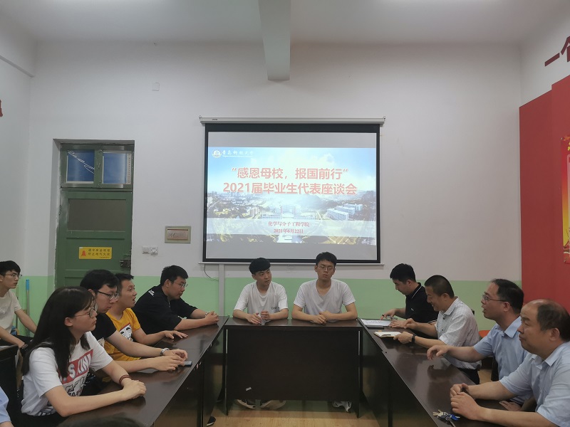 6月22日,学院在一号行政楼党员活动室举办了以“感恩母校,报国前行”为主题的毕业生代表座谈会。学院经理罗细亮,副经理高洪涛,党委副书记兼副经理杨小明及2017级化学、应化专业的毕业生代表们参加了本次座谈会。