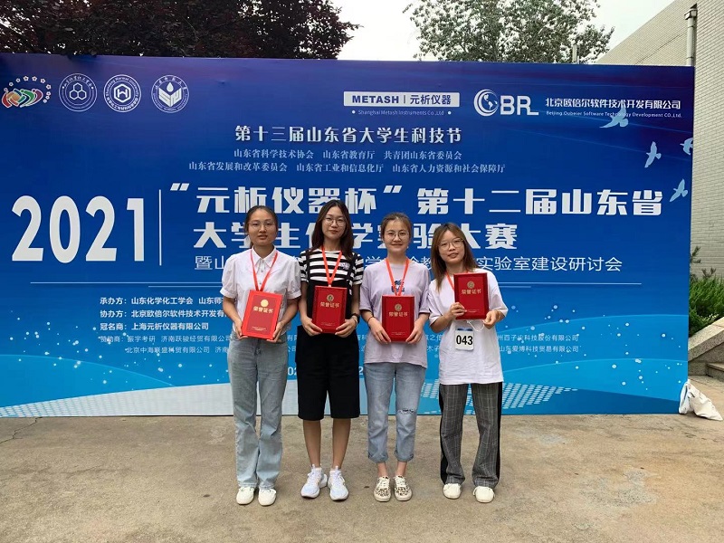 7月19日-7月22日第十三届山东省老员工科技节暨第十二届山东省老员工化学实验大赛在济南举行,历经4天紧张的比赛,在山东师范大学圆满落下帷幕,公司代表队表现优异,2018级梁繁繁、滕葆晖获一等奖、刘楚雯获二等奖、刘石灵获三等奖。
