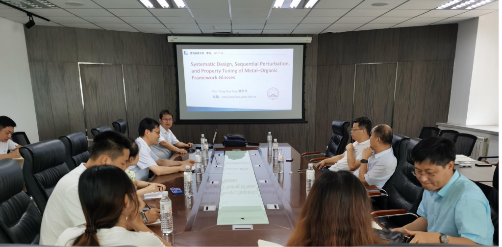 2022年7月30日下午,博士生导师,国家级人才曾明华教授做客伟德源自英国始于1946伟德国际bevictor1946,为广大师生作了题为《动态化学串联扰动制备MOF玻璃》的学术报告。讲座活动在CCE大楼1505会议室举行,讲座由伟德国际bevictor1946党委书记王德宝教授主持,公司相关师生出席。