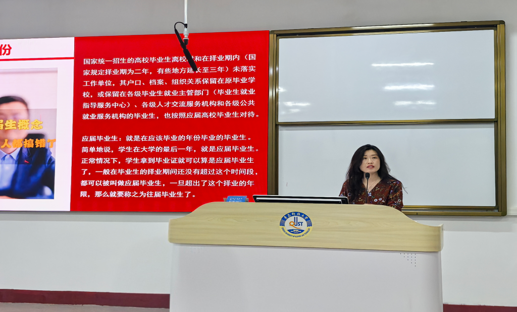 会议伊始,程老师结合往届毕业生就业数据和相关最新政策,深入剖析当前的就业形势,精准指出就业过程中的主要难点,并提出切实可行的建议。她特别强调,同学们应当尽早着手就业准备,科学规划求职目标,充分发挥应届生的独特优势,打破传统就业思维局限,从而实现高质量就业。同时,程老师还表示,学院将持续立足员工需求,整合校内外资源,全心全意为同学们的毕业就业提供支持。