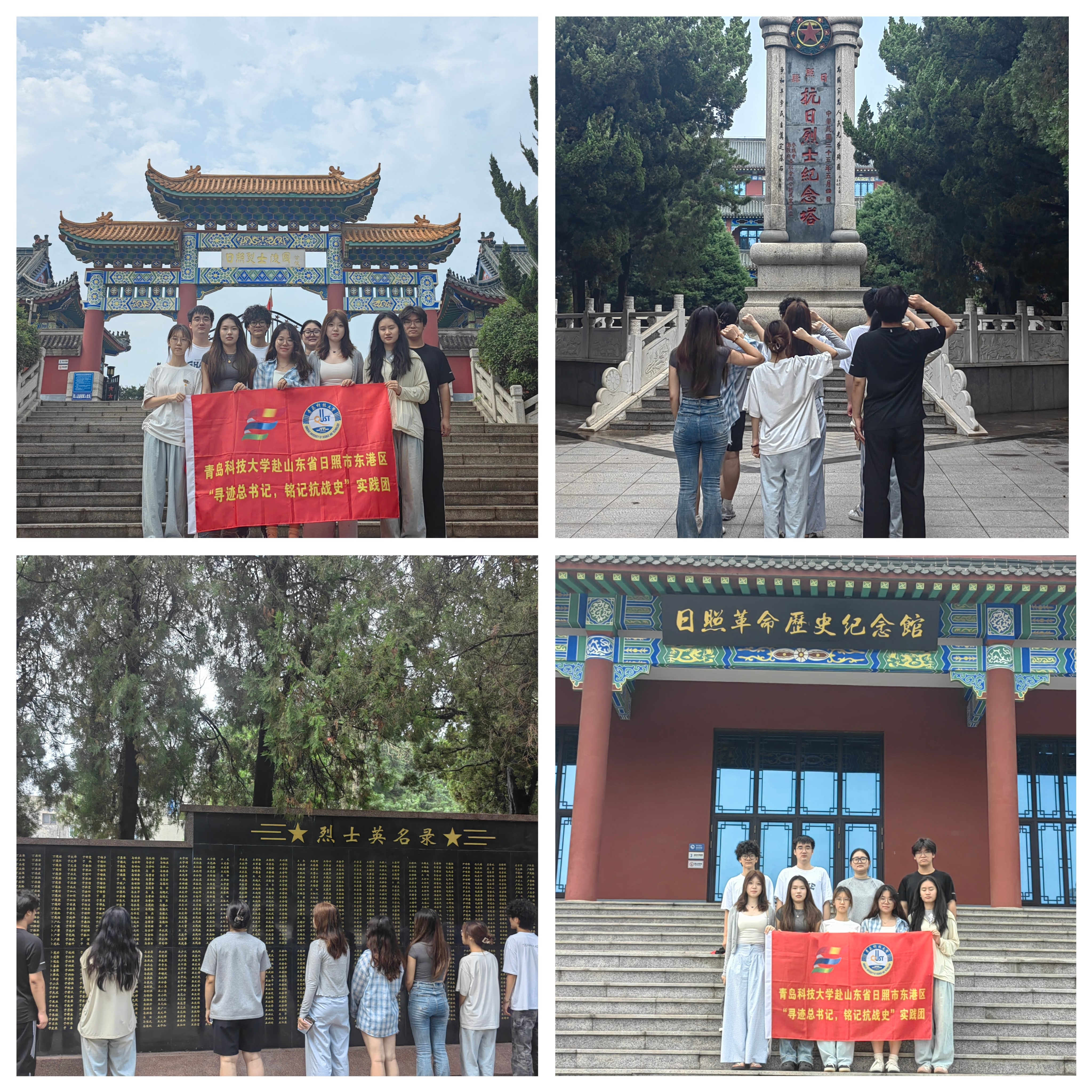 在庄严肃穆的日照烈士陵园,实践团成员怀着无比崇敬的心情参观革命历史纪念馆,沉浸式感悟那段烽火连天的峥嵘岁月。随后,全体成员肃立在抗日烈士纪念塔下,举起右手,庄严宣誓,既是对先烈的深切告慰,更是对青春使命的郑重承诺。在烈士英名录前,成员们驻足凝视那些镌刻在石碑上的名字,深刻认识到今日的和平来之不易,青年一代应将先烈的无畏精神内化为担当,让初心在时代考验中愈发坚定,在面对困难和挑战时,勇往直前,永不退缩。