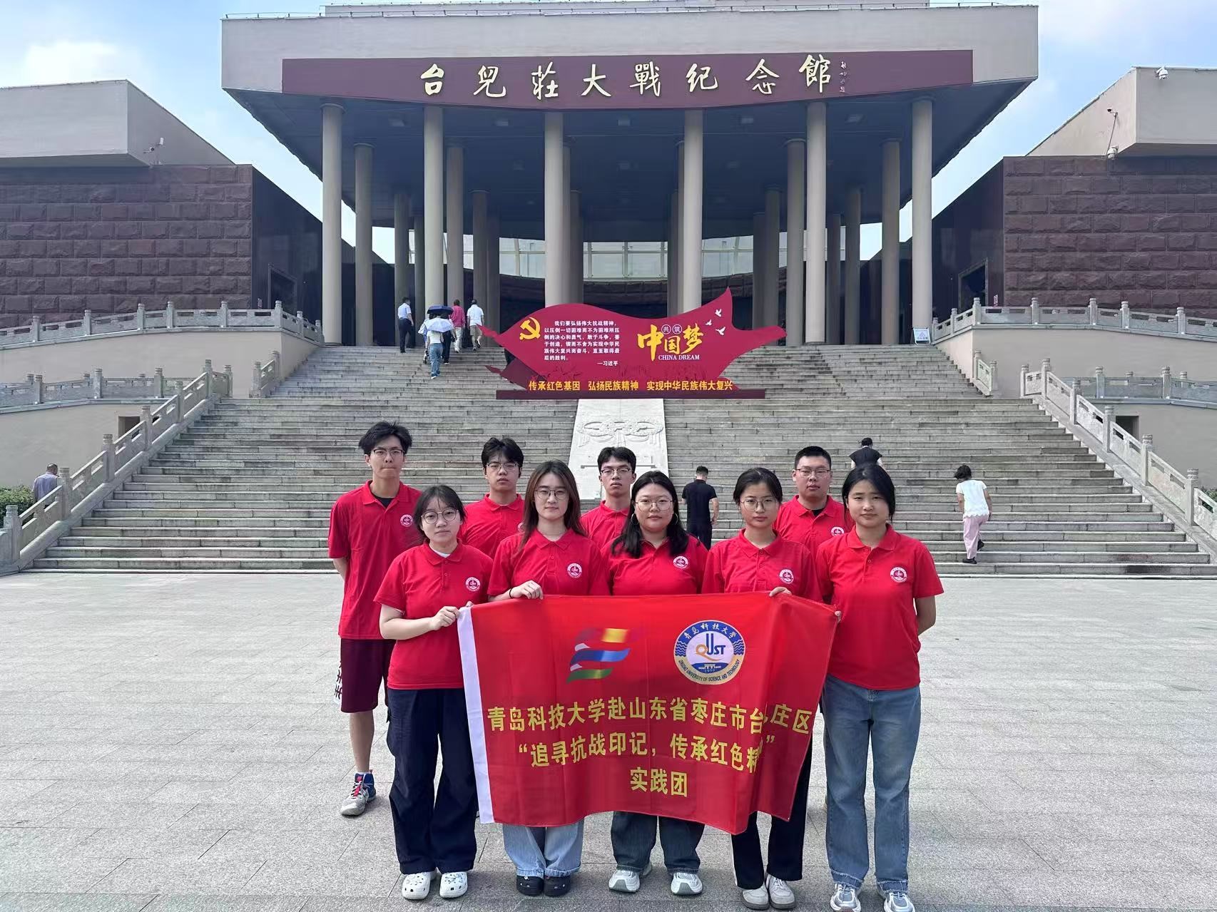 在台儿庄大战纪念馆,队员们站在复原的战场场景前,断壁残垣间仿佛还能听见枪炮的轰鸣。台儿庄战役是全民族抗战的重要转折点,在讲解员的带领下,队员们深刻感悟到感悟到面对民族危亡,全体军民万众一心、共赴国难的革命精神、抵御外侮的坚定决心以及“宁为玉碎、不为瓦全”的民族气节。