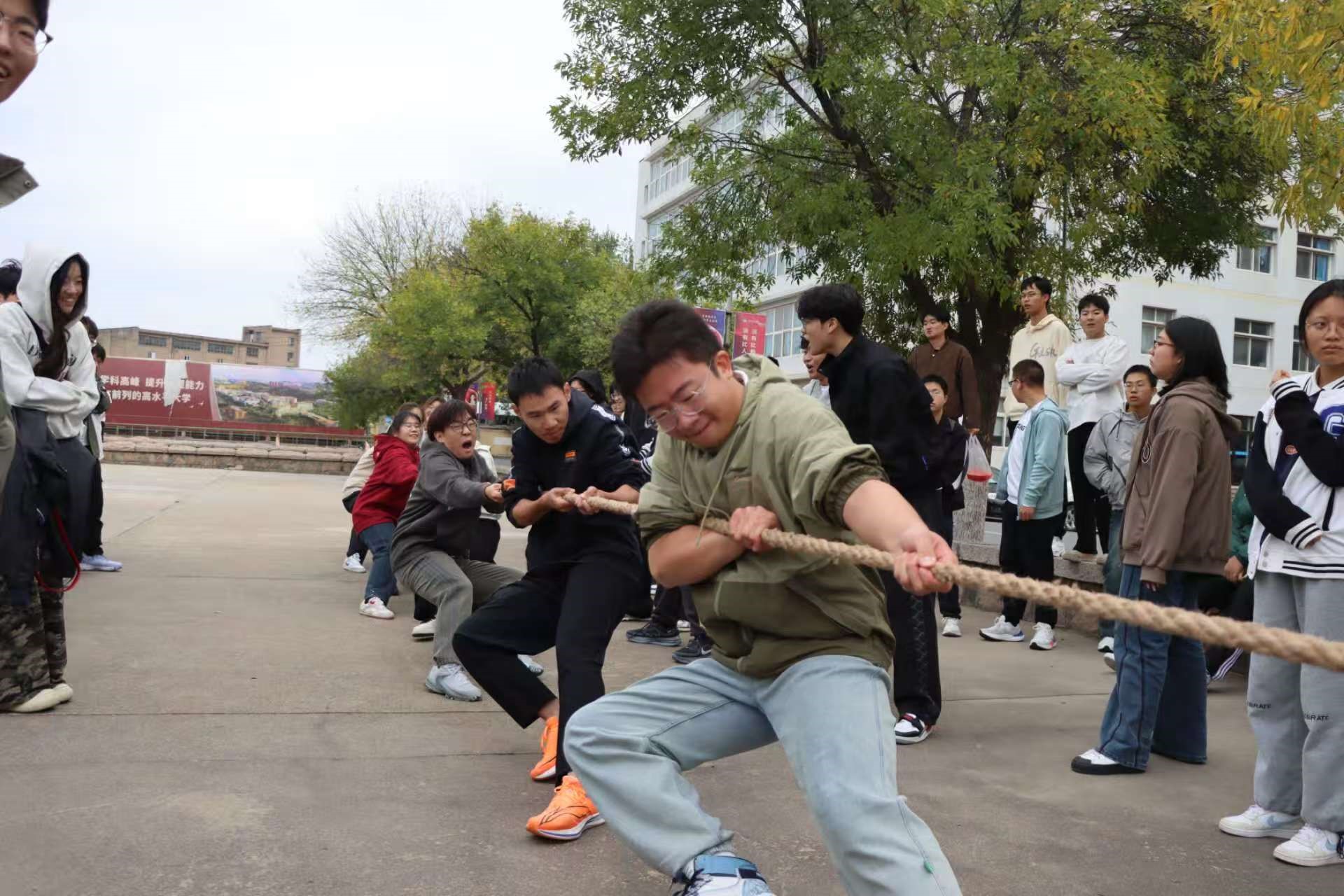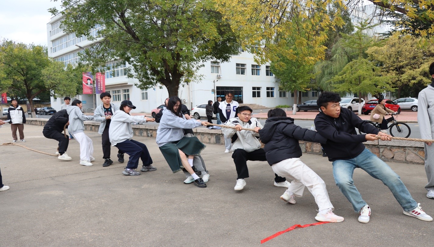 为响应“爱体育,兴科大”校园体育文化号召,丰富校园文化生活,展现班集体卓越风采,增强班级凝聚力,伟德国际bevictor1946于2025年10月19日在小五四广场组织2025级员工开展了一场热血沸腾的拔河比赛。本次比赛以班级为单位进行角逐,14支队伍踊跃参赛,每支队伍由5名男生和4名女生组成,通过抽签分组确定比赛顺序。