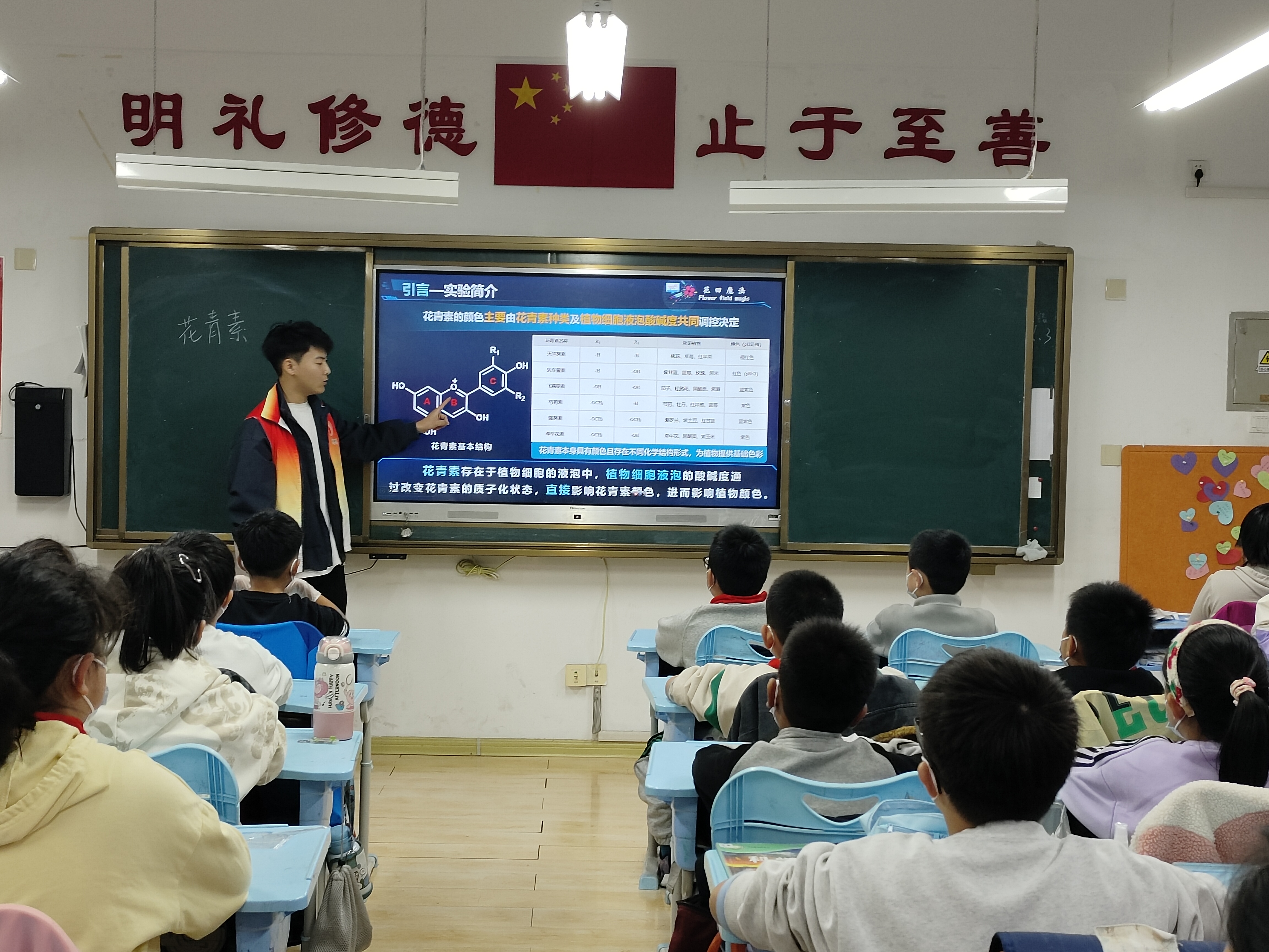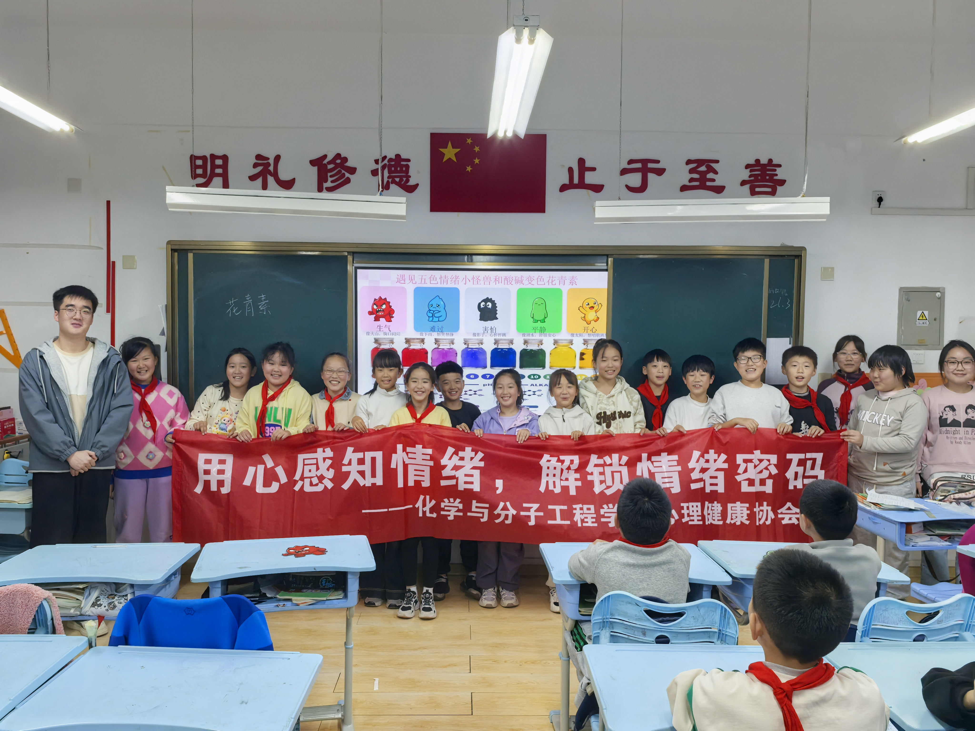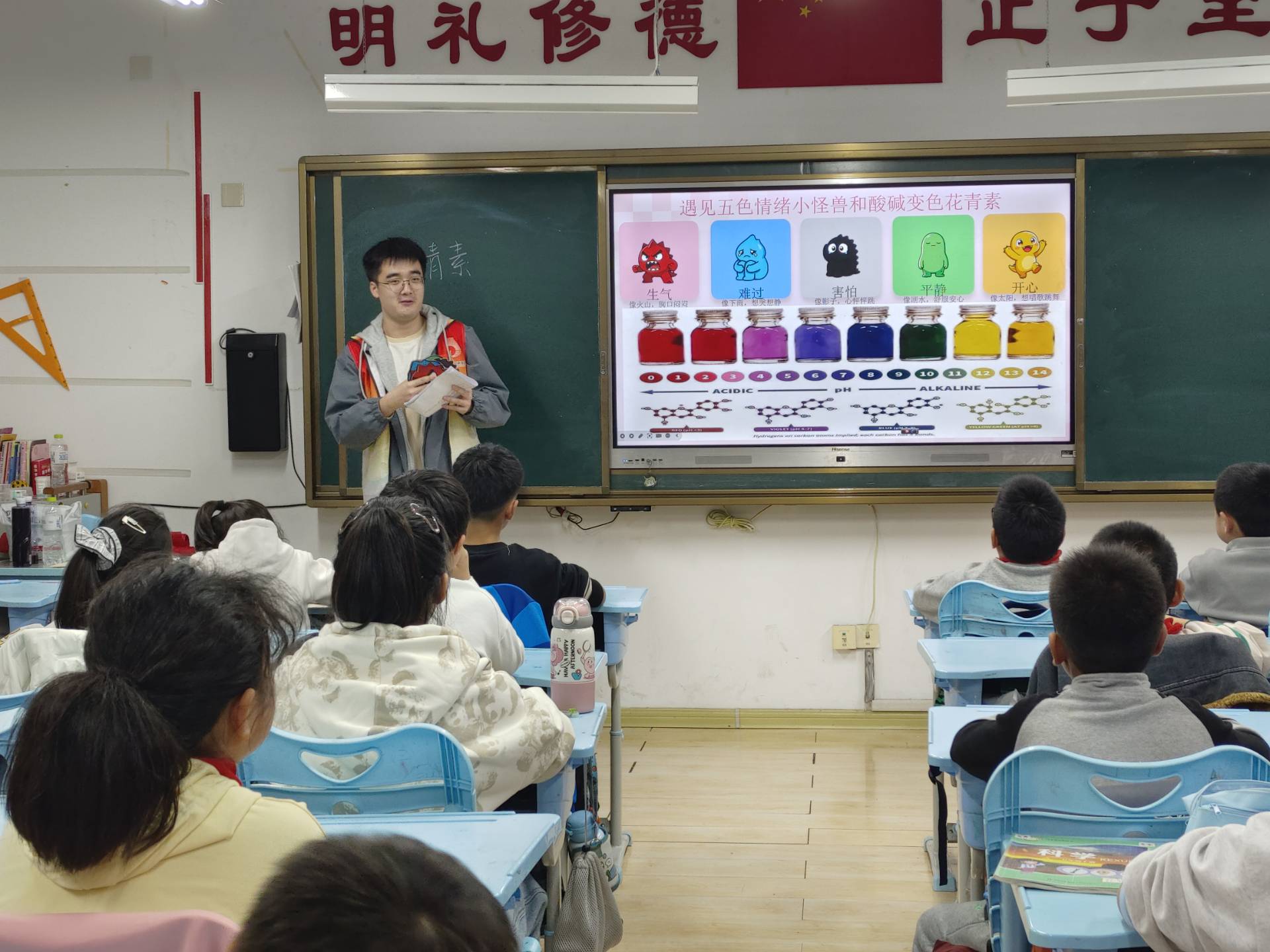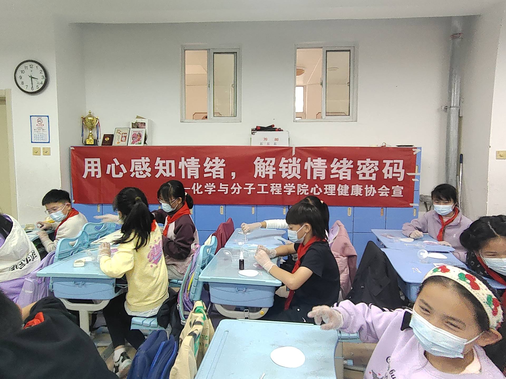 10月29日,伟德国际bevictor1946心理健康协会、学院研究生党支部与小分子志愿服务队联合市北区洛阳路街道康居社区党委,共同前往青岛明德小学,联合开展一场集化学科普与心理辅导于一体的特色志愿服务活动。